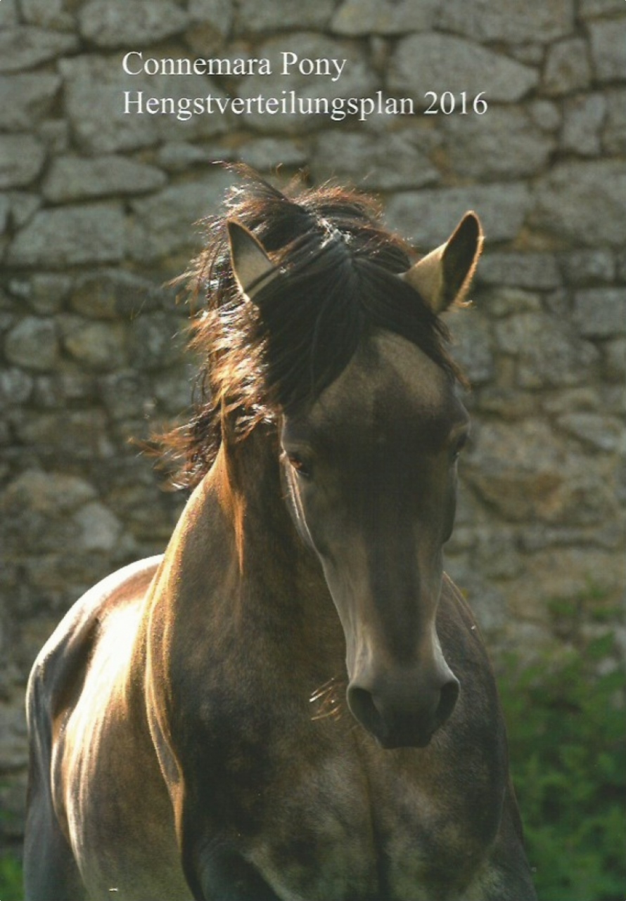 The Connemara Pony Henstverteilingsplan 2016 cover page is illustrated with a superb photo of our stallion Glenree de l'Aulne, photo by Susanne LEHMANN, taken when she was over. Thank you very much Susanne.