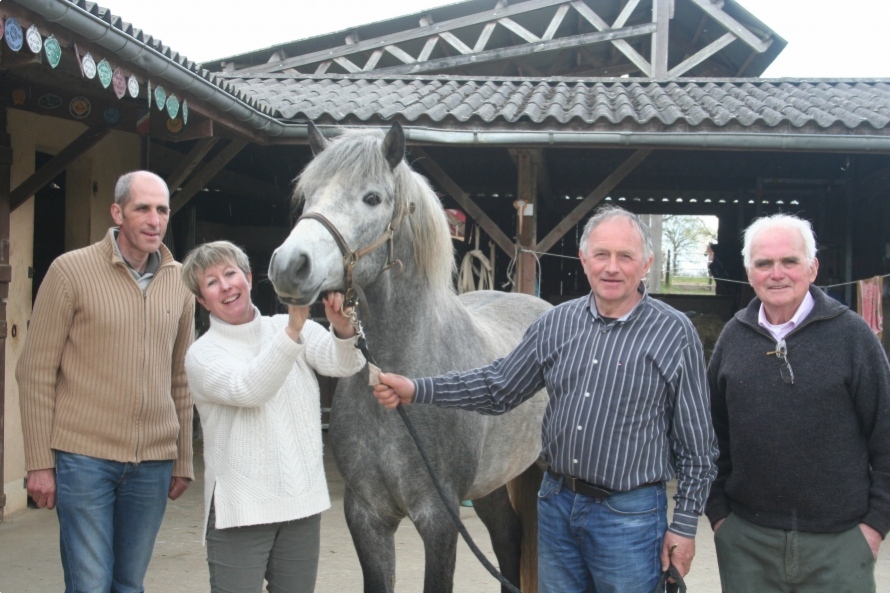In 1995, DEXTER LEAM PONDI did his first breeding season in our stud ; in 2016 it is the new DEXTER LEAM PONDI, stopping by with his breeder and owner, our friend Gilles LE MOUELLIC ; nice day with Jérôme and Catherine TOUPET of the BRÉTIS STUD visiting their foundation mare Bib de l'Aulne (27 yrs old) who will stay a little while in our stud before going to their new home in Normandy.