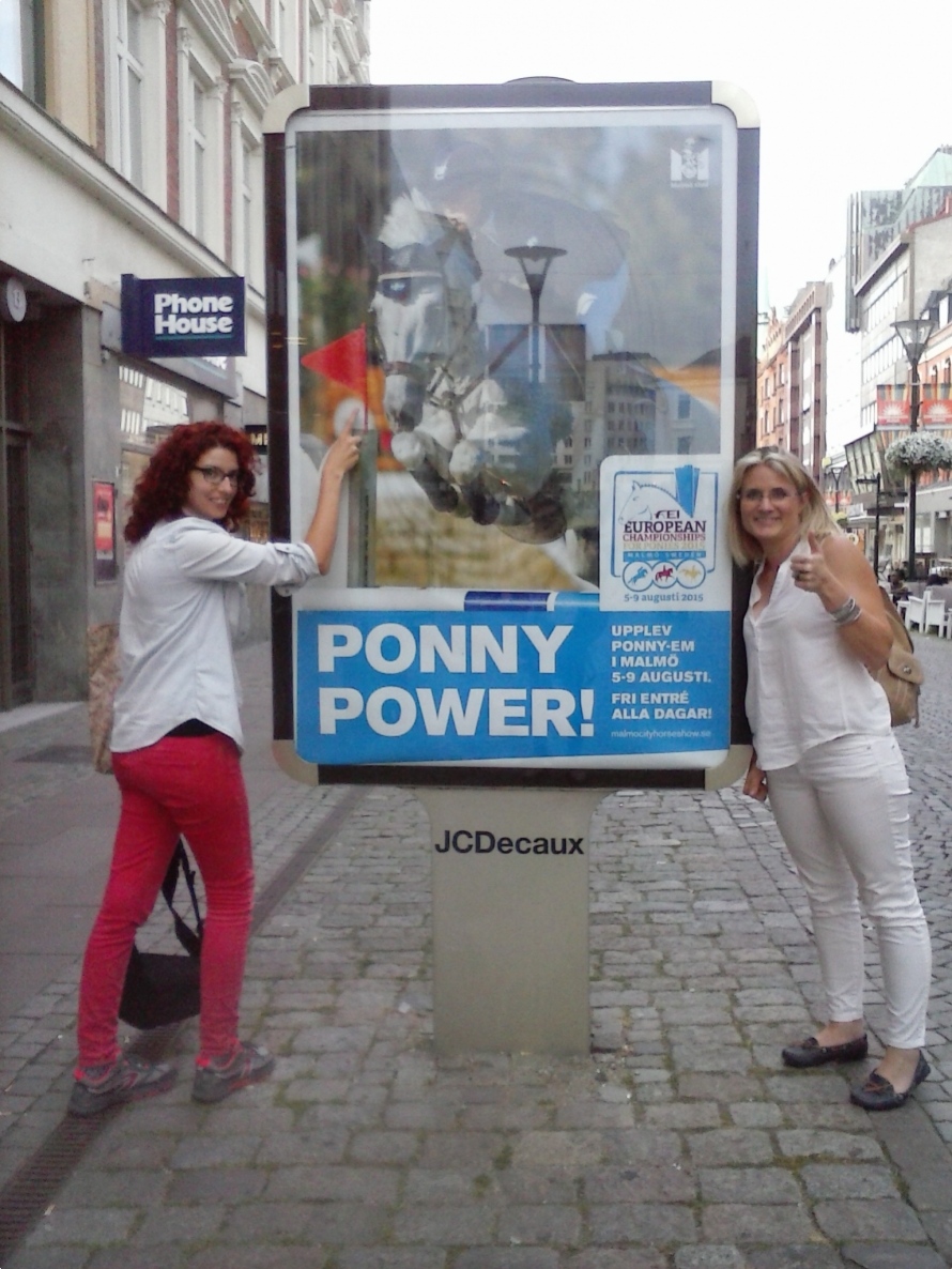 C'est avec surprise et bonheur que nous avions reçu cette photo prise par l'équipe de Poney As (Camille, AnaÏs et Pauline) lors de leur séjour à Malmö en Suède l'été 2015 pendant les Championnats d'Europe Poneys, c'est bien Ix de l'Aulne, ambassadeur de l'évènement, qui ornait les panneaux publicitaires de la ville..